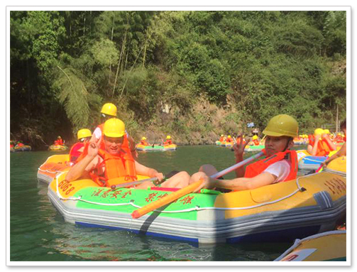 经过简单的休整,下午来到了极负盛名的浙西第一峪谷漂流——王子谷(青溪)漂流,在此宝屋员工们要展开一次社旅活动中最最惊险刺激的团队拓展活动。在整个漂流过程中,无论是激流勇进的险滩,或是曲折跌宕的弯道,还是险峰峭壁的山涧,处处引发大家的尖叫与惊叹,让人情不自禁地感慨大自然鬼斧神工的同时,又经历了一场有惊无险的“旅程”。
