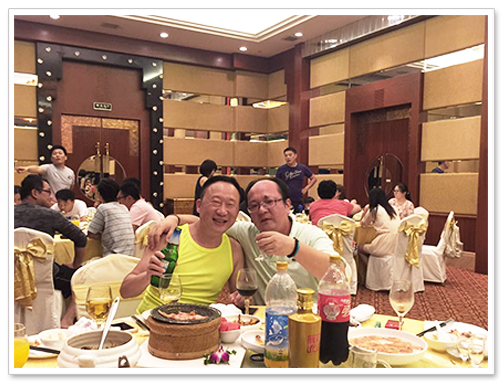 当晚,我们在下榻酒店的五楼挽霞阁中餐厅举行晚宴,大家齐聚一堂,把酒言欢,酣畅淋漓;更有小朋友们相互切磋游戏技艺,其乐融融。